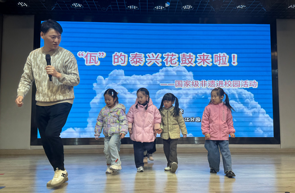 稚嫩的童声应和着悠扬的旋律,飘动的衣角随着跳跃的身影翻飞……今日,泰兴市育红幼儿园文江分园内,孩子们化身“小小传承人”,踏着欢快的节奏,学习国家级非物质文化遗产——“泰兴花鼓”。这场寓教于乐的“非遗启蒙课”,让传统文化与童真童趣碰撞出绚烂火花。