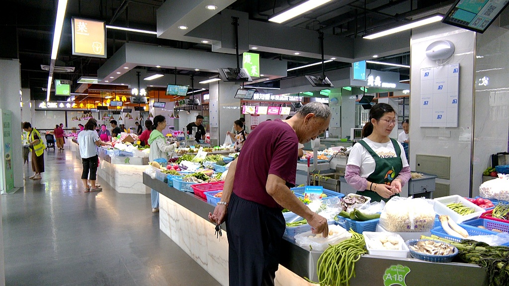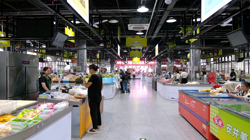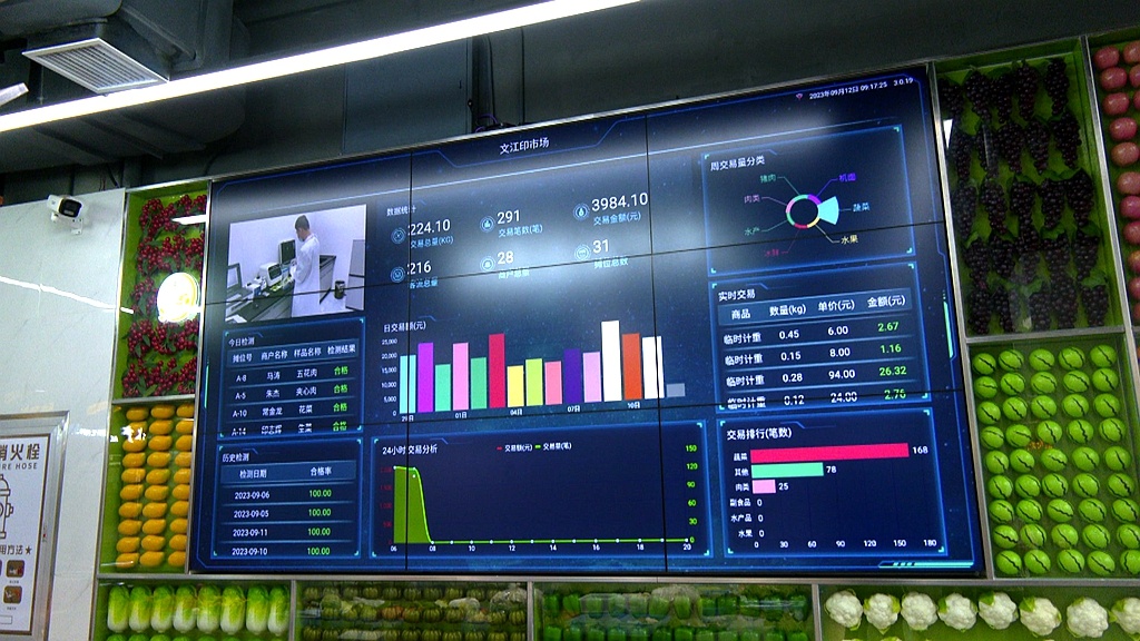 近日,记者来到泰兴市文江印智慧生鲜市场,位于菜场入口处的智慧管理总览屏正实时显示着市场客流量、交易数据以及农产品农药残留检测数据等。据了解,该市场于今年7月建成运营,共设肉类、蔬菜、水产、贝类、水果、预制菜等摊位31个。市场内,干净整洁、灯光明亮,正常开放的中央空调,给市民带来清凉、舒适的购物体验。“肉类、蔬菜类等食材,都很新鲜,品种也齐全。而且这儿的环境不错,比较干净。”市民陈智阳说。