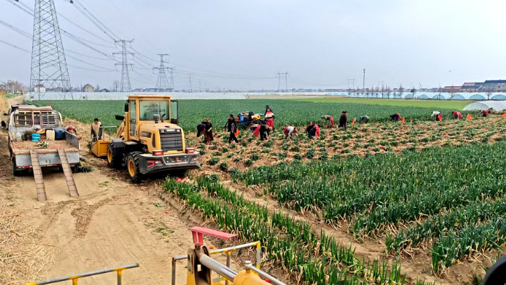 近日,在江苏泰兴黄桥镇陈桥村宗园家庭农场田头,农场负责人宗园正在指挥工人将刚采摘的大葱装车运输。“供销社提供配套的科学施肥用药服务,让我们施肥用药更精准、更绿色、更专业了,今年我们的大葱长势特别好。”宗园高兴地说。