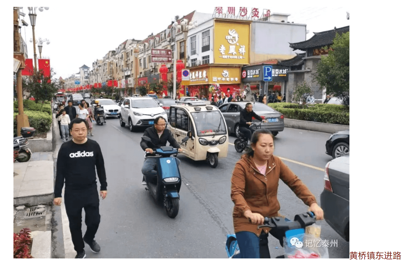 黄桥十桥中路,如今车水马龙,昔日却是商船云集。这条路的前身是一条河道,叫运粮河,从老镇区中心纵贯南北,把老镇区分为东西两部分。运粮河曾经北接淮水,南迎江潮,两岸码头相连、街巷相接。河上有10座桥梁,自南向北为南坝桥、大石桥、珠巷桥、米巷桥、红桥、永丰桥、直来桥、东岳桥、大关桥、小关桥。解放战争期间,运粮河被国民党驻军征集民夫填平,变成马路。新中国成立后,曾称人民路。改革开放后,街道拓宽改造,为纪念曾经的运粮河、曾经的10座桥梁,改称十桥中路。