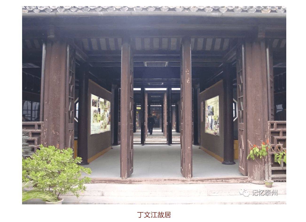 黄桥镇的米巷长约250 米。中国地质学之父丁文江的高祖于清嘉庆年间担任押运漕粮的武官,通晓米市行情,叫家人在黄桥开设米行,获利颇丰,成就一番家业。其他人家也仿效卖米,巷中米店林立,形成行市,遂有米巷之名。清道光年间,丁文江的高祖富甲一方,仿照当时宰相潘世恩的庭院,在米行东首营建宅院,人称丁万昌、万昌花园或丁家花园。丁家花园临巷面阔9间,分东、中、西三部分,东部为客厅、花厅、花园等,中部为堂屋、书房等,西部为堂屋、卧室等,院中设假山、鱼池,栽种乔木、修竹,游廊迂回,曲折相通,是典型的苏州园林风格建筑。黄桥战役期间通如靖泰临时行政委员会、刚解放时泰县县政府曾驻此宅院。1980年,改设为新四军黄桥战役纪念馆。2017年,新四军黄桥战役纪念馆异地重建,宅院东半部改设为通如靖泰临时行政委员会旧址纪念馆,西半部辟为丁文江纪念馆。