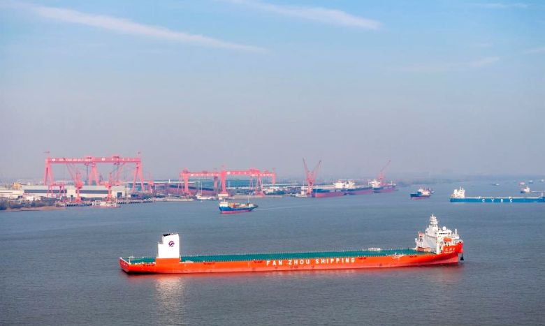泰州泰兴:“泛洲8”轮锚泊,展现高效航运服务效能