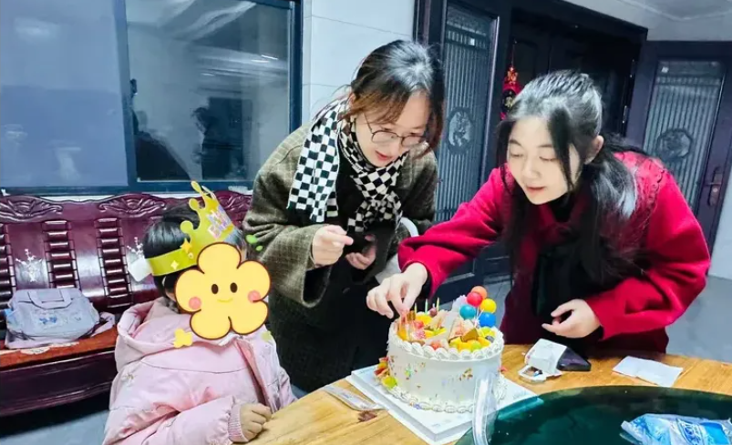 2025年1月3日,是“心蕊宝贝”小新凤七岁的生日,这个日子格外特别。育红幼儿园的心蕊妈妈们,在结束了一天忙碌而疲惫的工作后,未曾有片刻停歇,怀揣着满满的爱心与早已精心准备好的礼物,趁着夜色匆匆赶到了小新凤温馨的家中,只为陪伴她度过这个意义非凡的生日。 当妈妈们抵达时,夜幕已然笼罩大地,小新凤正和家人在屋内看电视。听到心蕊妈妈亲切的呼喊声,她迫不及待地从房间里飞奔出来迎接。走进屋内,心蕊妈妈将精美的蛋糕轻轻放在桌上,随后带着小新凤洗净小手,为蛋糕插上闪烁的蜡烛。烛光闪烁,映照着小新凤纯真的眼眸,恰似星辰大海般明亮。大家轻声哼唱着生日歌,小新凤闭上眼睛,双手合十,郑重地许下了美好的心愿,那一刻,屋内洋溢着温暖与幸福。