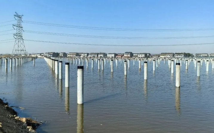 近日,随着泰兴市曲霞16MW鱼塘水面光伏发电项目施工的进行,项目初见雏形。未来,这里会形成水域上空安装光伏板进行发电,水下进行渔业养殖,实现资源立体化利用。