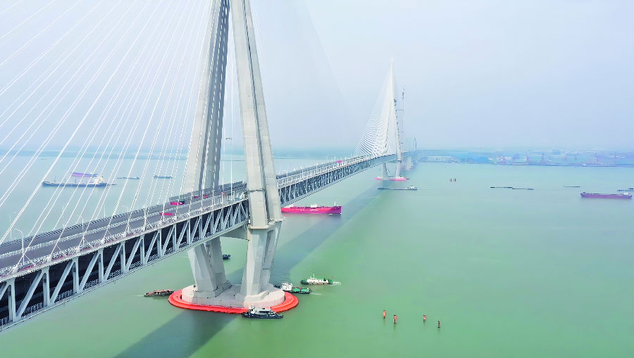 为大桥穿上会呼吸的“铠甲”——常泰长江大桥跨江段防撞设施全部安装完成
