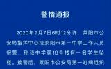 - 2020-09-08 17:08:11山东莱阳一高一新生校内坠楼死亡 警方通报:排除他杀,正在进一步调查