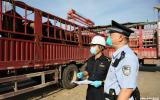 厦门边检、海关等口岸联建单位在联合执勤(央广网发 祝婕女摄) 央广网厦门7月15日消息(记者陈庚 通讯员叶明亮 张晓彤)载运3236头种牛的卢森堡籍“婆罗门快车”轮14日上午靠泊厦门海翔码头,这也是厦[详细]