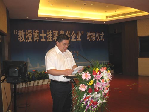 图为泰州市委常委、组织部部长陆新讲话 (记者 马宏飞 特约记者 肖春华)8月16日上午,市委、市政府举行“教授博士挂职泰兴企业”对接仪式,聘请来自江苏科技大学、浙江大学等国内26所高等院校的78名教授、博士到我市30多家企业挂职。