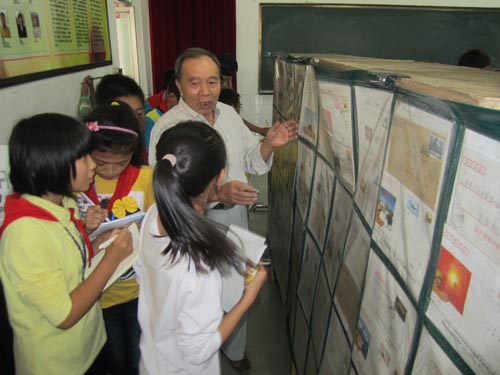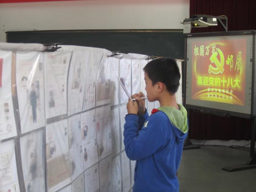 (通讯员 季文才 谢道权 朱正东)9月19日,为喜迎党的十八大和祖国63岁华诞,市集邮协会和市大生小学联合举办了主题为“喜迎十八大 祖国万岁”的邮展,大生小学全体师生参观了邮展。