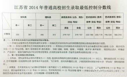2014江苏高考招录进行时#江苏高考分数线公布#第一阶段录取省最低控制分数线主要包括文科类、理科类的本一线、本二线,以及体育类、艺术类本科(公办、民办)线。见下图:考生们今晚可查分数,祝泰兴高三学子好运。详见省厅官方微博:http://weibom/u/3674007143 。 注:一、艺术类校考本科专业录取最低控制分数线: 1.31所独立设置本科艺术院校和清华大学等13所院校艺术类本科专业的录取最低控制分数线由各校自行划定。 2.除31所独立设置本科艺术院校和清华大学等13所院校以外的其他本科院校校考专业的省最低控制分数线:公办、民办均为文化175分/专业合格。其中,取得音乐学(音乐教育)、绘画(油画、版画、壁画)、中国画、美术学(美术教育)、视觉传达设计、环境设计、产品设计、服装与服饰设计专业校考合格考生,还须参加省专业统考,且省专业统考成绩须达到155分。 二、第一阶段填报志愿资格线: 1.文科类、理科类考生必测科目要求为4C1合格,选测科目等级符合院校的要求,文科类总分在291分以上、理科类总分在302分以上,方可填报第一阶段高考志愿(报考高水平运动员、飞行学员、定向培养直招士官、少数民族预科班和华侨大学“侨台生”预科班的除外)。 2.体育类、艺术类考生七门必测科目等级中D级不超过3门,体育类文化209分/专业97分以上、美术省统考文化210分/专业160分以上、音乐省统考文化170分/专业200分以上、艺术校考文化165分/专业合格(报考31所独立设置本科艺术院校和清华大学等13所院校艺术类本科专业不受此限制),方可填报第一阶段高考志愿。 ——转自省教育厅官方微博“江苏教育发布” |