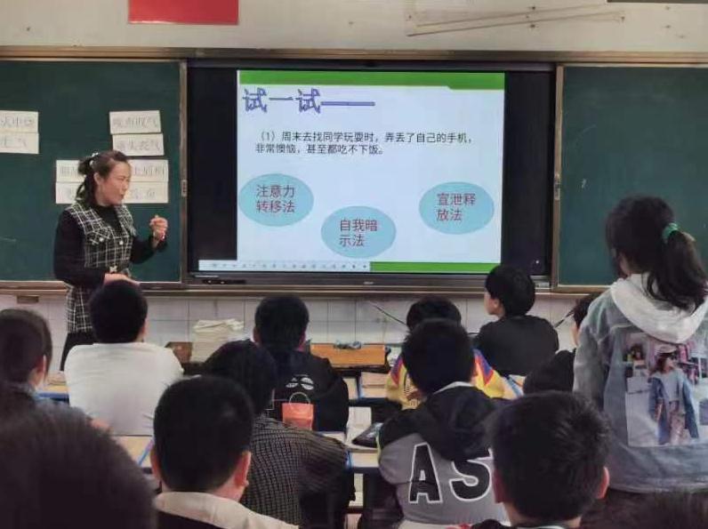 该校陶翠飞老师为大家展示了一节心理健康课《丰富多彩的情绪世界》。她以游戏的方式让学生了解各种情绪,让学生在轻松和谐的课堂氛围中有所收获。在了解“喜怒哀惧”四项基本情绪后,学生在讨论和情境体验中明白了消极情绪和积极情绪对自我行为发展的影响,萌发了“做自己情绪的主人”的意识。活动中陶老师还运用心理技术,让学生说方法,说感受,说理解。整节活动中学生身心放松,参与度高,表现力强,收获满满。