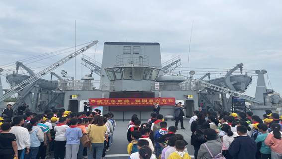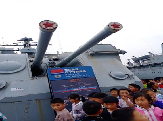 第二站,师生们来到高港海军舰艇文化园,跟随导游游览了驱逐舰、护卫舰、补给舰三艘舰艇,通过聆听海军的发展历程,师生们认识到我国综合实力的强大、守卫我国蓝色国土的重要性;通过对海军五大兵种的构成及主要武器装备的介绍,师生们进一步了解了我国海军的发展和现状,明白了海洋对于国家的重要性。