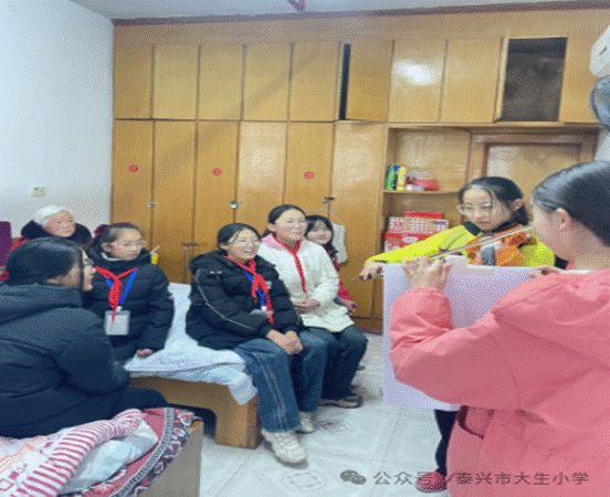 小志愿者们还为老人们献上精心准备的节目——古筝演奏、吉他演奏、小提琴演奏还有诗朗诵,每一个节目都充满着孩子们的真诚祝福,老人们的掌声和笑声成了这个冬末春初最动人的旋律,也让我们的小小志愿者感受到了奉献的快乐。 节目结束后,我们的小志愿者们还陪着老人们一起聊天,听他们讲讲过去的动人故事,回忆曾经的美好时光,面对同学们的问候和关怀,老人们的脸上洋溢着笑容,敬老院里温情满满,一片和谐。