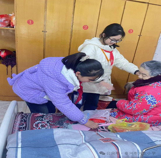 随后,小志愿者们用实际行动践行志愿服务精神和雷锋精神:有的帮老人整理床铺,有的给老人梳头发,有的给老人盖被子,有的给卧床的老人喂奶茶......大家分工协作,个个干劲十足。