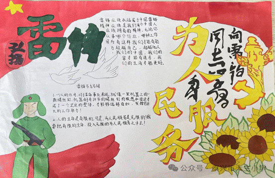 小志愿者们还用手抄报的形式充分展示他们对“雷锋精神”的所思所想所感所悟,作品主题鲜明,内容丰富多彩,版式新颖多样,字迹工整清晰。相信大家以后都会以雷锋为榜样,把雷锋精神真正落实到日常行为规范中。