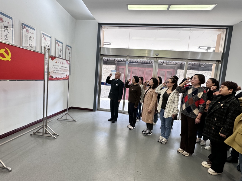 全体党员教师在鲜红的党旗下,高举右拳,重温无悔誓言,不忘入党初心。(通讯员 史乐乐 钱天添) |