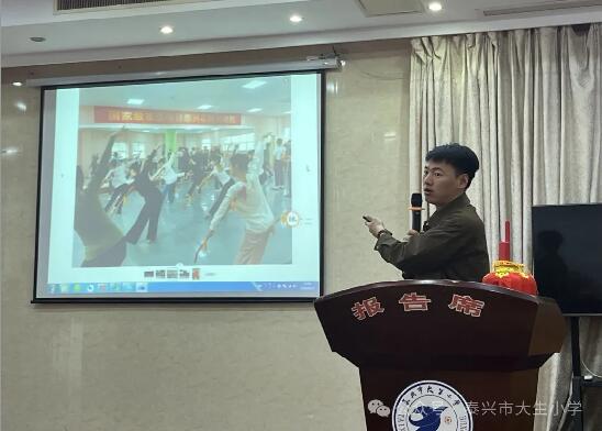 紧接着,胡盛主任问队员们“你们知道我国的民族舞有哪些吗?”在这一问一答中,队员们对我们泰兴本土文化——泰兴花鼓产生了浓厚的兴趣。 胡盛主任用一张张精美的图片,向队员们介绍泰兴花鼓发源于泰兴市广陵区南沙乡的一种民间舞蹈,因为用道具“红灯”照明,所以又称“夜火灯”,至今已有三四百年的历史,目前可追溯四代传承。我们的“泰兴花鼓”在150年前就成为成熟的民间舞蹈。 胡盛主任又用一段段精彩的表演视频,生动地向队员们讲述了“泰兴花鼓”的曲调主要有三个,分别是花鼓调、跨金索和倒花篮,有着浓郁的苏北民间小调风味,气氛热烈、欢快、喜庆。