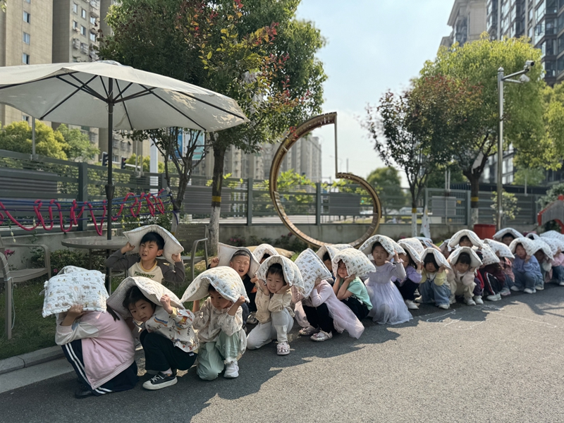 泰兴市育红幼儿园文江分园开展地震避险疏散演练活动