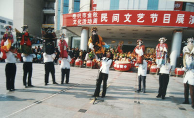 泰兴木偶戏由安徽流传而来,已有180多年历史。据史载,木偶又称傀儡,木偶戏亦称傀儡戏。春秋战国时代称木偶为俑,从俑发展到傀儡戏称经历了漫长的阶段,到了明清时代,出现了提线木偶、杖头木偶、布袋木偶等表演形式。民国时期,泰兴的木偶戏班多时达117家,活跃于市井等乡间。1959年,众多的木偶戏班合并为3个木偶剧团,演出范围北到沈阳,南到湖南,在上海大世界游乐场演出长达数月,颇受观众的欢迎。1968年调整合并为泰兴县木偶剧团,1971年曾在苏北为柬埔寨西哈努克亲王访华作来场演出。1973年被扬州地区接收,改名为扬州地区木偶剧团,其后,仍有业余木偶剧团活跃在泰兴农村,目前尚存黄桥镇太平村张介城木偶戏班及南沙镇邵垈林张玉宝木偶戏班,该两个戏班为祖传。 【细节介绍】