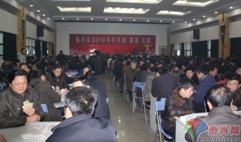 3月2日上午,泰兴市2010年扑克牌掼蛋比赛在该市文化中心9楼会议室举办,来自全市各乡镇、部门的169对选手参加比赛。