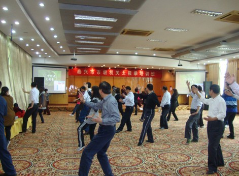 (包萍 李力 报道)2012年4月24日至25日,泰兴体育局会同泰兴机关工委举办了为期两天的太极拳培训班,来自泰兴市直机关、企事业单位和乡镇的50多名干部职工参加了培训。