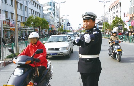 殷伟工作的国庆班,扼守泰兴老城区的交通“咽喉”,位于国庆路与鼓楼路的交叉路口,辖区主次干道总里程33公里,学校、医院、购物中心、“金融一条街”、大型超市等一应俱全,是泰兴人气最旺、最易拥堵的繁华地段。
