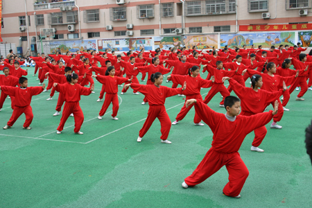 代表们观摩专题班会活动该市少先队员正在进行太极拳表演