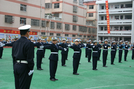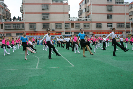 4月26日下午,团中央、省少先队负责人、泰州市领导和来自全国各地,参加全国少先队工作培训班暨《少先队辅导员工作纲要(试行)》高峰论坛的300多名少先队辅导员代表,在泰兴市中心小学观摩了该市少年军警校技能表演和艺术体操表演,对该市少先队工作给予了高度评价。(张可 朱笑天 陆裕顺摄报)