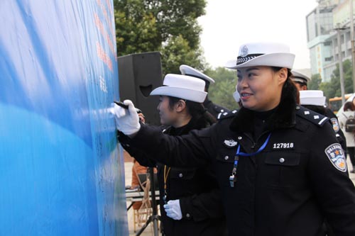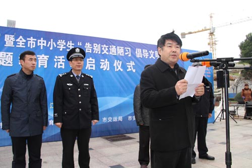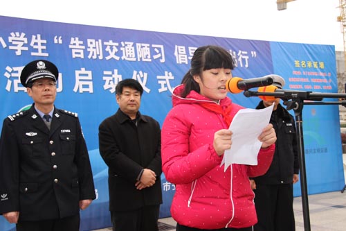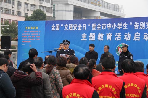 活动首先由市公安局党委委员、副局长蔡林发表热情扬溢的致辞;驾驶员代表、校长代表作表态发言;鼓楼中心小学的学生率先向社会发出倡议:告别交通陋习,从我做起;市委宣传部副部长、市文明办主任张余华讲话并宣布启动仪式正式开始。所有参会人员纷纷在“告别交通陋习,从我做起”巨幅背景墙上签名承诺,现场发放交通安全宣传品和122宣传画册。