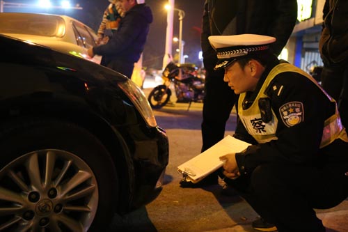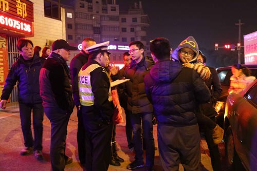 他们是泰兴市公安交警大队的普通民警和辅警。元旦,放弃了休息,放弃了团聚,放弃了休闲,默默地守着路面,只为让出行的你我更加顺畅。钱峰是泰兴交警大队事故处理中队的一名民警,2016年1月1日正好轮到他值班,图为他正在处理一起交通碰擦事故。据了解元月1日当天,钱峰和他的战友们接到事故报警55起,而12月31日跨年的当天,接警76起。 ![]() 一天处理76起事故