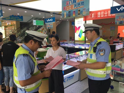 大队组织警力一方面深入企业、单位落实好国庆节前源头管理责任,组织民警、辅警深入辖区国庆路进行创建宣传工作,重点对国庆路沿线居民、商户、银行、机关进行逐一上门宣传,发放公开信,提出实行门前“四包”,保证创建工作取得实效。另一方面以查处机非不分、逆向行驶、闯红灯、闯禁区、违章停车等违法行为为重点开展集中整治;加大机非不分、逆向行驶的教育宣传并联合城管部门对各商店、小区、酒店门前“四包”进行了督查和清理。(顾剑明 黄新丽) |