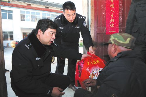 连日来,市公安局近百名民警持续开展“大走访大落实”集中慰问活动,为走访过的困难群众送去了1200多只“暖心包”。据了解,这1200多只“暖心包”全都是由民警自发捐赠的。在集中慰问活动中,民警将这些“暖心包”逐一分发到困难群众手中,另外,还将6万多元现金分送给了120个特困家庭。图为民警把“暖心包”送到残疾群众家中。