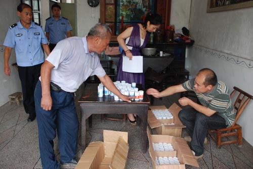 根据市民的反映,今年以来泰兴市面上陆续出现假冒伪劣药品“复方咳喘灵胶囊”和“复方关节炎胶囊”,泰兴市食品药品监督管理局加大对市面上此类药品的监管力度,泰兴市公安局治安大队成立专门调查小组,走访群众、摸底排查,其中一支小分队深入看守所,对此前制售假药的在押人员进行走访调查,最终将目标锁定在虹桥镇杨某的身上。8月16日下午,泰兴市公安局治安大队民警会同市食品药品监督管理局工作人员在虹桥镇某村将杨某抓获归案,现场缴获“复方咳喘灵胶囊”、“复方关节炎胶囊”170瓶。经鉴定,上述两种药系假药,足以严重危害人体健康。 目前,杨某已被刑事拘留,案件正在进一步审理之中。 |