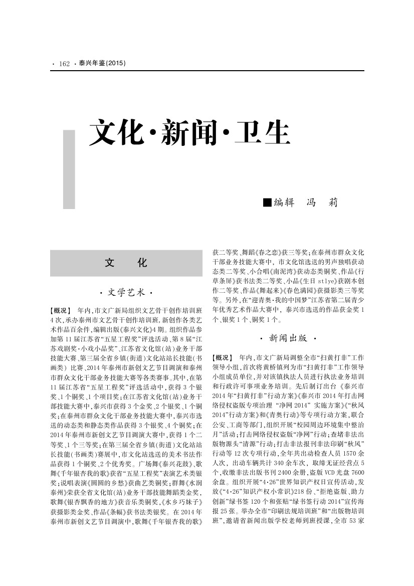 当前位置:首页 > 人文 > 概览 > 泰兴年鉴 > 2015泰兴年鉴 > 正文