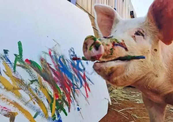 人们对猪最基本的印象可能是它的贪睡,科学研究发现,这是由于猪的大脑里有一种叫内咖肽的物质,具有麻醉作用,并且猪生性怕热,所以猪不喜运动,爱睡觉。 此外,猪给人的另一个印象大概就是“肥”,特别是宽大肥硕的一对大蒲扇式耳朵,而对于拥有大耳垂的人,年长的人常会夸“大得像猪耳朵,有福气呦”。 有趣的是,猪的腿倒真比人的腿要细。也许,我们应该这样“实事求是”地夸赞美女:呵,你的腿和猪腿一样细哦! 此刻,我们似乎看到了买家秀和卖家秀的差距,印象中的猪和现实中的猪真的有许多不一样之处。 美国埃默里大学神经科学家洛丽·马里诺说:“我们已经证明,猪与狗、黑猩猩、大象、海豚甚至人类一样拥有很多认知能力。”猪的智商可比三岁孩子,如猪擅长闯迷宫和记住物品的位置,能够根据镜子寻找隐藏的食物等。 你见过猪画画么?南非有一头小猪,堪称猪界的“毕加索”,那艺术造诣杠杠的。平时没事它就嘴里叼着画笔,在画布上红黄绿紫的涂鸦……那样子和眼神十分专注,在颜色和线条上的作画风格前卫大胆,很具大师范儿。