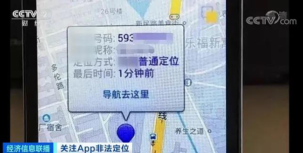 一年前,在江苏南京做生意的陈先生遭到不明人员围堵,而他并不清楚自己的行踪是怎样被对方获得的。警方调查发现,围堵陈先生的人利用了一个具有定位功能的App。陈先生一旦登录某交友软件,该款App就能获得他的定位信息。 警方认为,该行为已经涉嫌侵犯公民个人信息,南京警方随即展开调查,赶赴青海,抓获了这款App的开发者吴某。 江苏省南京市公安局挹江门派出所民警 孙藩一:这个App的使用群体包括讨债公司、所谓的调查公司,也有公民个人使用,主要查动态轨迹。 专家介绍,这款App采用了一种数学原理获取他人位置信息——“三角定位”。用户在登录某交友软件时,定位App利用2台或者2台以上的探测器在不同位置探测被侦测人的位置,然后运用三角几何原理,确定目标的位置信息。