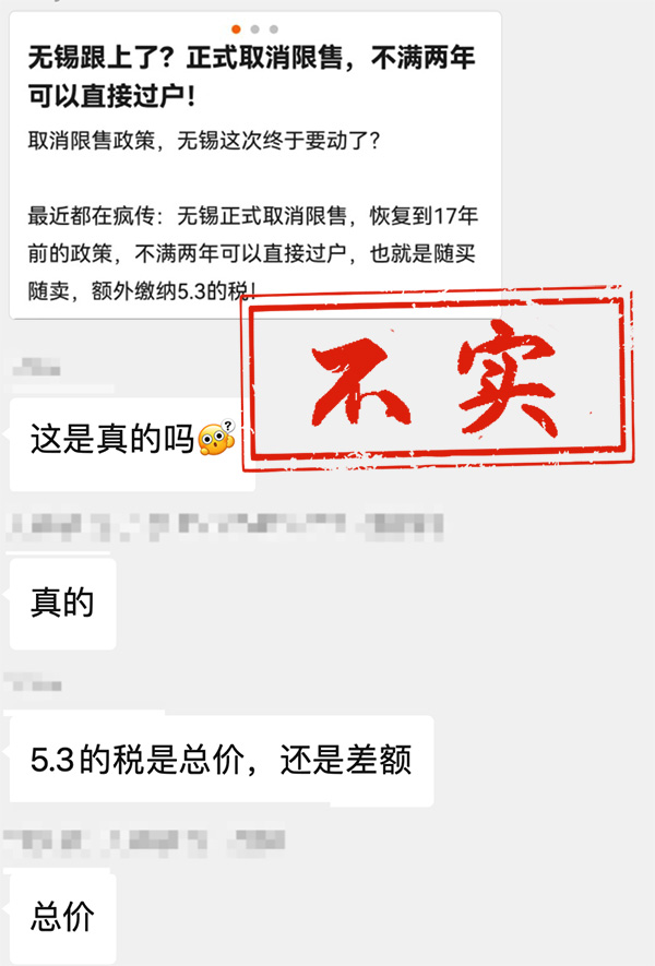 近日,有关“无锡取消限售”的消息在当地社交网络刷屏,还声称是“官方消息”: