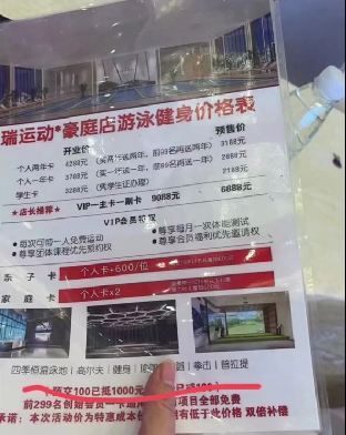 当时该店的宣传资料 健身馆突然关门 老板失联 卷走百万千万元预付款 投诉后,大多不了了之