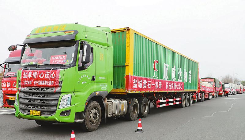 △驰援黄石农副产品车队 疫情防控初期,各地交通管制严格,蔬菜产品运输成了问题。市农业农村局立即与市交通运输局沟通联系,第一时间联合印发了《关于确保“菜篮子”产品和农业生产资料正常流通秩序的紧急通知》,畅通“菜篮子”产品和农业生产资料运输“绿色通道”,严格执行“一证一车一人一用途”,保障“菜篮子”产品和农业生产资料“进得来、出得去”。目前,盐城市累计发放绿色通道车辆通行证3598张,出具调拨和转运证明1069份。大丰久禾生物有限公司主要以生产杏鲍菇为主,受疫情影响交通运输受阻,造成大量杏鲍菇积压,该企业老板急得直跺脚。大丰区农业农村局了解情况后,采用“即申请、即审核、即办理”,用最快的速度帮其办理了绿色通行证,疫情发生后该企业顺利销售杏鲍菇800余吨,有效缓解了该企业库存积压问题,保障了市场供应。