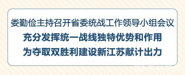 荔枝新闻讯 3月10日,江苏省委书记、省委统一战线工作领导小组组长娄勤俭主持召开省委统一战线工作领导小组会议,回顾总结去年全省统战工作,研究部署今年工作任务。娄勤俭强调,要坚持用习近平新时代中国特色社会主义思想统领统战工作,提高政治站位,增进思想共识,凝聚智慧力量,为服务全省工作大局作出新的更大贡献。