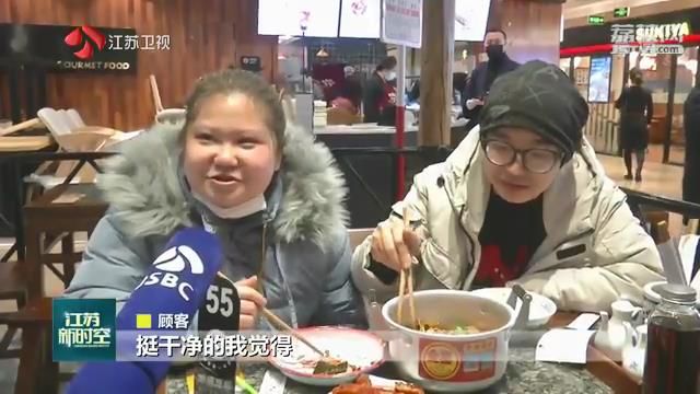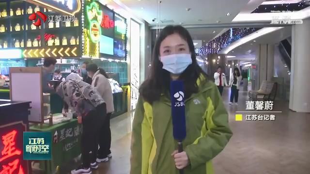 江苏台记者董馨蔚说:“这里是南京金鹰新街口店8楼的餐饮楼层。今天是周末,我们看到选择堂食的顾客还是比较多的。大家在进入餐厅之前都是进行测量体、温手部的消毒,同时要出示苏康码,而且还要扫码一个‘安心码’,可以追溯到客人的行动轨迹消费记录。”