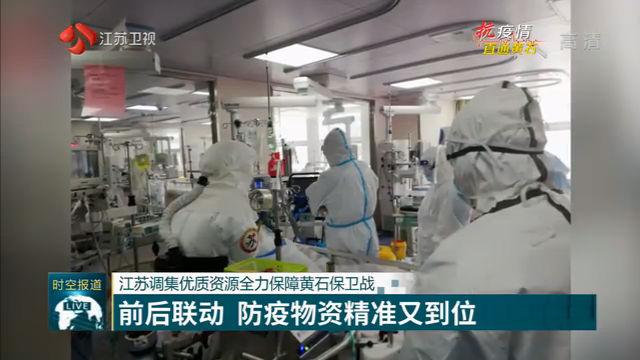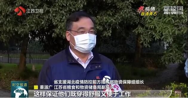 疫情发生以来,江苏全力推动重要医疗物资企业复工复产、转产增产,积极组织采购,第一时间保障了前方医疗队的基本物资供应。截至3月12日,江苏对口支援黄石市一次性使用医用口罩、医用防护服、核酸检测试剂等各类防疫物资133万个(套),最大程度保障了医疗队的"零感染"。 与此同时,前后方全时保持联络畅通,精准掌握重点医疗物资的日消耗量、库存量和需求量,实现供需精准对接。