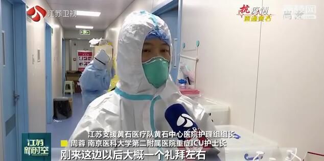 江苏支援黄石医疗队黄石中心医院护理组组长、南京医科大学第二附属医院重症ICU的护士长周蓉说:“刚来这边以后大概一个礼拜左右,随着一些收治病人越来越重,气管插管这样的一个频次的增加。然后后方很快就调来了足够物资,给了我们很大的一个支持。”