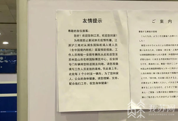 在等待区等了一段时间,赵先生和其他的江苏旅客被送往昆山国际会展中心,再分批前往各个城市。 赵先生说,从上海到昆山的大巴车,每个人都必须分开靠窗乘坐,保证安全距离。不管是在机场等待区,还是昆山国际会展中心的等待区,都有各种食品和饮用水供归国人员免费取用,非常贴心。