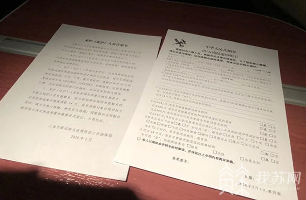 需要乘客填写的健康申明卡 15号清晨,赵先生乘坐的飞机在上海浦东国际机场落地。乘客出舱前,空乘人员已经请所有旅客填写好了健康申明卡,国内旅客还要扫二维码登录“健康云”系统,填写入境信息。前往过意大利、伊朗等疫区的旅客和其他旅客分批下飞机。 落地后,所有旅客都会被再次要求填写信息、症状检测和问询,赵先生说,整个流程迅速有序,工作人员态度温和,大家都很配合。
