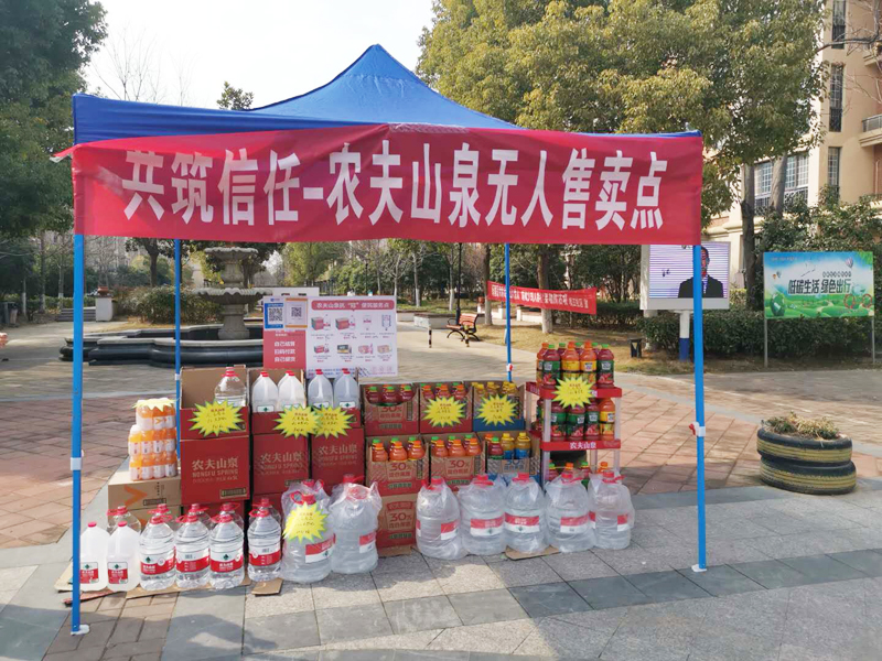 沭阳是全国闻名的花木之乡,花木种植总面积达60万亩,全县花木网商4万余家,12个“中国淘宝镇”,86个“中国淘宝村”。近年来,沭阳通过政府监管、行业自律、线上直播等多种举措,强力打造电商诚信生态体系建设,推动电商产业可持续发展。 小小的防伪锁扣和标签,正是沭阳推动花木电商诚信经营的创新之举。通过认证的网店,将被授予“沭阳县花木电商诚信网店”称号。这些诚信网店允许在自己的网店、包装箱等处,使用诚信标识。同时,购买认证网店产品的消费者,还将享受宿迁市沭阳县网络交易诚信专项资金的官方保障。 诚信市民:农夫山泉无人售卖,宿迁人得满分 疫情期间,农夫山泉股份有限公司宿迁分公司在危机中寻“机”,针对小区居民自觉居家不外出,迅速在宿城区11个小区大门入口处设置无人售卖点。