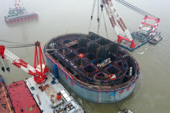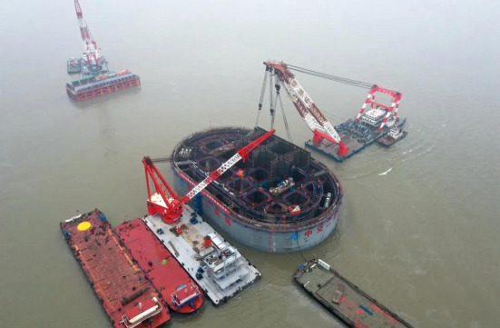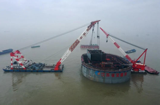 3月26日上午,常泰长江大桥主塔基础钢沉井首次水上接高施工全面展开,这是继完成首次井壁混凝土浇筑再一次取得重大进展。