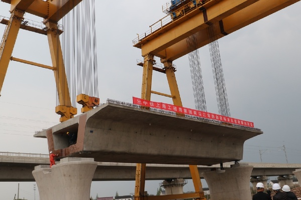 南沿江城际铁路白茆河特大桥首榀箱梁架设完成