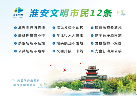 为更好地适应淮安市创建全国文明城市的新形势、新要求,淮安市创建办对2018年发布的《淮安市民文明行为“十不准”》进行了升级修订,最终确定形成了《淮安文明市民12条》,在今天的新闻发布会上予以正式公布。 此次发布的《淮安文明市民12条》包括“文明排队一米线”“光盘行动用公筷”这些与疫情防控直接相关的内容,也包括“遛狗牵绳清粪便”“垃圾分类不乱扔”“楼道杂物要清光”这些与环境卫生密切相关的内容。 据淮安市委讲师团团长王维国介绍,此举为了提醒每个人是自己健康的第一责任人,引导每个人承担起应尽的社会责任,参与社会健康治理,形成群防群控、全民参与的良好局面,为疫情防控奠定良好基础;更是为了通过抓整治、优环境,抓习惯、促健康,长期常态、有力有效地改善环境卫生状况,提升全民健康素养,把爱国卫生运动、文明城市创建提高到一个新水平。