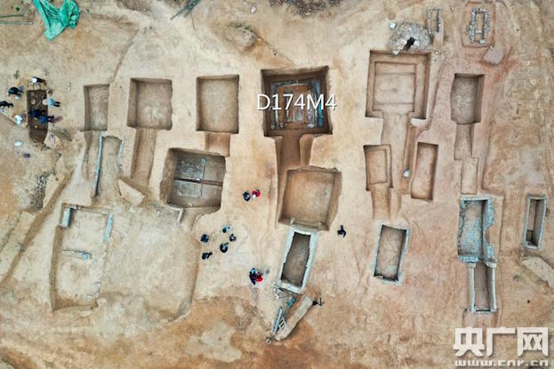 考古队员在测量墓葬(央广网发 图片由长兴县博物馆提供) 对于长兴发掘出的D174M4将成为浙江首次采用现代科技手段完成的实验室考古案例,县博物馆馆长应征表示非常期待,“这也是今后考古的发展趋势,我们能提供第一个让研究所‘大展身手’的项目,十分荣幸。” 2016年3月1日,为配合太湖龙之梦乐园项目的开发建设,浙江省文物考古研究所会同长兴县博物馆在长兴县碧岩土墩墓葬群展开考古调查和发掘。从开始勘探至今,已历时4年多,共发掘土墩176个,发掘墓葬900多座。其中汉墓有720多座,出土器物9000余件。据了解,在此次发掘出的D174M4旁,徐军一行人还发现了另一个比较特殊的西汉时期的土坑墓,同样是三棺合葬,但它的椁底板是地砖铺成的,是土坑墓向砖椁墓过渡的一个新的墓葬形式,非常具有研究价值。 |